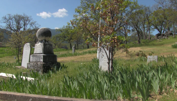 – From Ashland Plaza head south on Siskiyou towards the University. Turn left on Ashland Street and take that across Interstate 5 where is curves to the right, passes Dead Indian Memorial Road, and the golf course. The Emigrant Lake Recreation area sign appears formally to your left and… drive past it! The next gravel road on your left – maybe 300 yards – is your route to the Cemetery. Take that left and this dead ends into the cemetery.